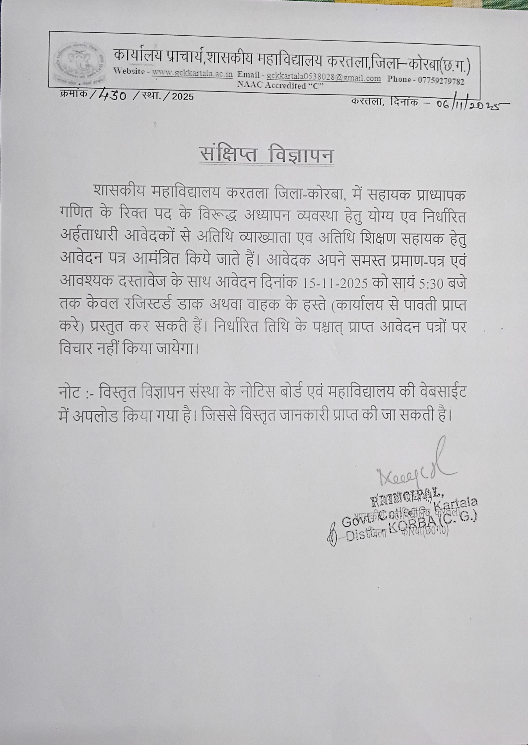 Government College Kartala, Korba (C.G.)